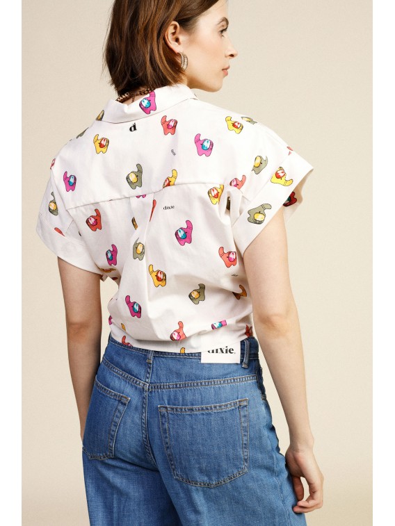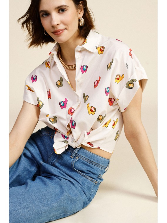 Adoptez un style frais et original avec cette chemise à manches courtes, ornée d'un imprimé vibrant et d'un lien à nouer sur le devant pour une plus grande liberté de mouvement. Parfaite pour ajouter une touche personnelle à vos tenues quotidiennes, elle est facile à assortir et idéale pour se sentir à l'aise toute la journée.