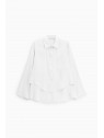 Ses lignes amples et sa coupe asymétrique font de cette chemise un allié polyvalent pour la vie citadine. Ses deux grandes poches avant lui confèrent une touche pratique, tandis que son ourlet irrégulier la rend idéale pour la superposition et la création de looks variés du matin au soir.