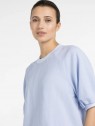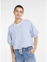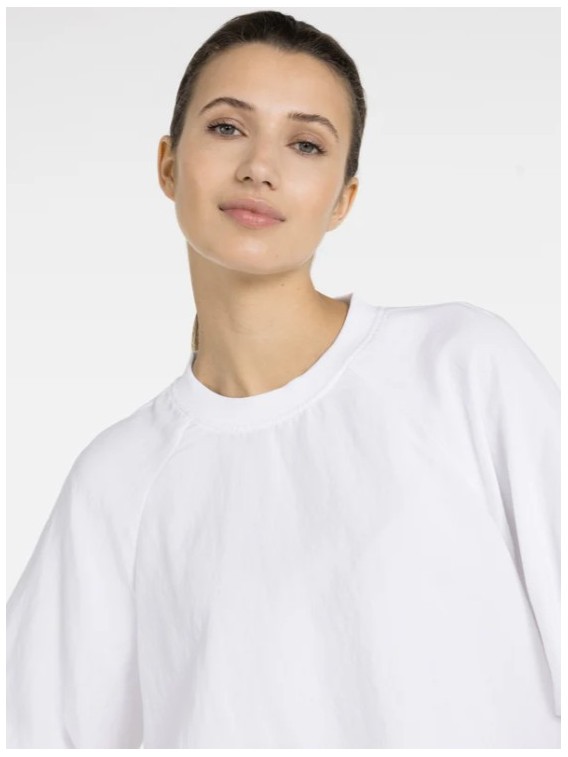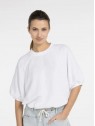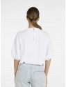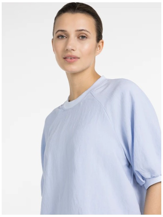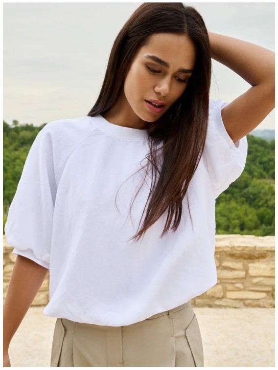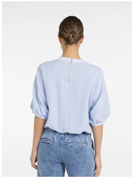 Cet élégant T-shirt a un col rond et des manches courtes ballon aux emmanchures légères. La coupe ample, légèrement courte permet de créer une silhouette féminine et moderne. Une fermeture éclair discrète au dos vient parfaire le look. Une pièce polyvalente à porter aussi bien de manière décontractée que plus élégante.