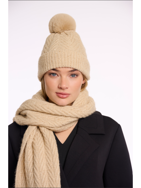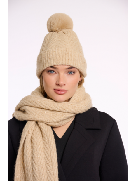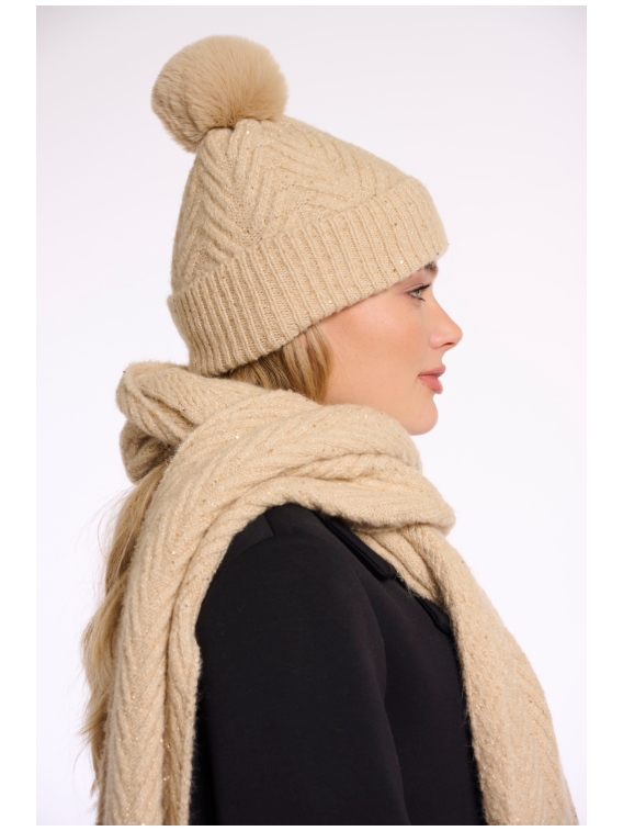 Enveloppez vous de douceur et d'élégance avec notre bonnet en maille orné de sequins scintillants qui captent la lumière au moindre mouvement. Associez le à nos gants Otis assortis : l'accessoire idéal pour les journées glaciales. Pompon inclus.