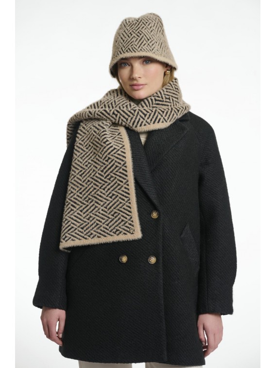 - Cette magnifique écharpe en tricot arbore un motif graphique saisissant, confectionnée dans notre matière signature, d'une douceur incomparable.