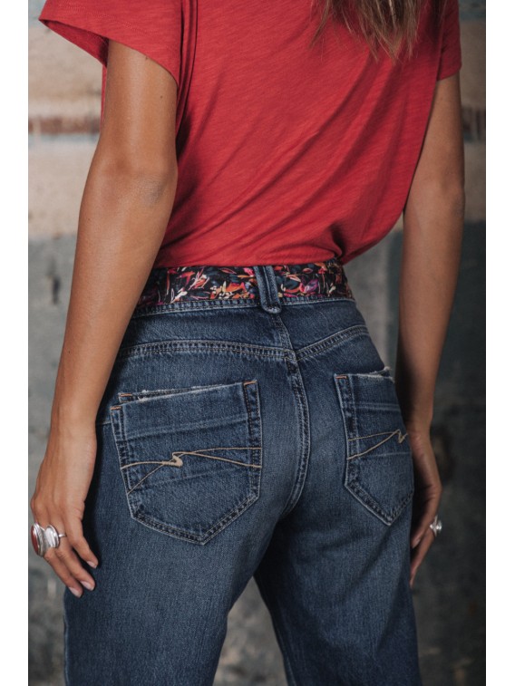Voici Timea, un jeans boyfriend droit qui se porte sur les hanches et s'achève par un revers en bas de jambe. Idéal pour un look féminin décontracté.