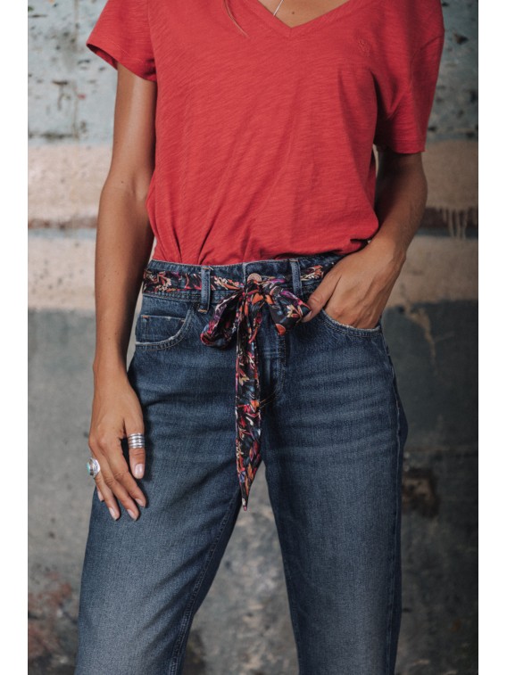 Son petit plus c'est le foulard multicolore qui se nouera à la taille ou que vous glisserez dans vos cheveux !