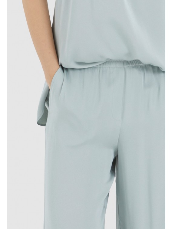 Le satin fluide au tombé doux et la coupe décontractée attirent immédiatement le regard sur ce pantalon. Malgré les poignets de jogging et le style pyjama, ce pantalon à enfiler est élégant. Le pantalon a des poches diagonales à l'avant, qui sont complétées par des poches passepoilées à l'arrière.
