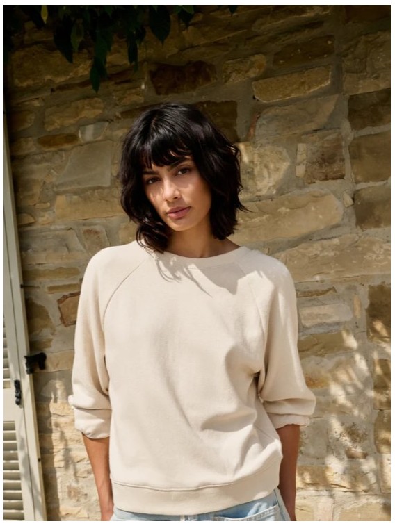 Ce sweat doux, fait à partir de coton mélangé, a une coupe ample, des manches longues et un col ras du cou. Le dos révèle une finition, apportant une touche féminine à une coupe plutôt décontractée. Optez pour son look sport moderne avec ses finitions en maille côtelée sur les ourlets et les emmanchures. Le mannequin mesure 176 cm et porte une taille S.