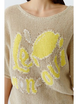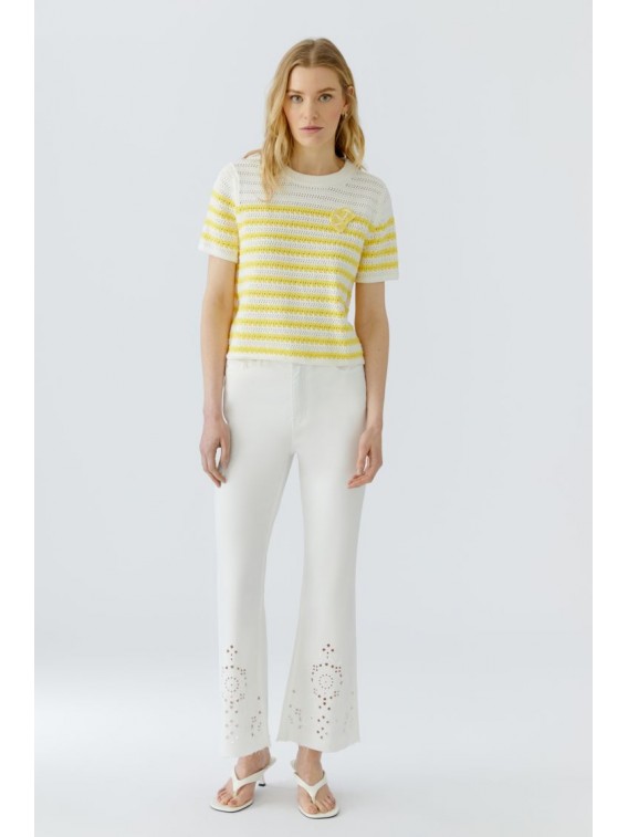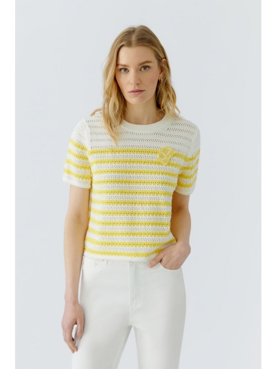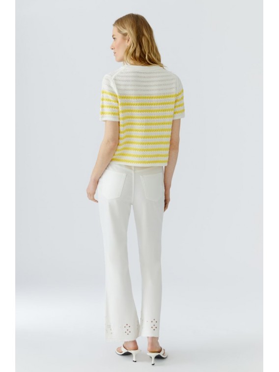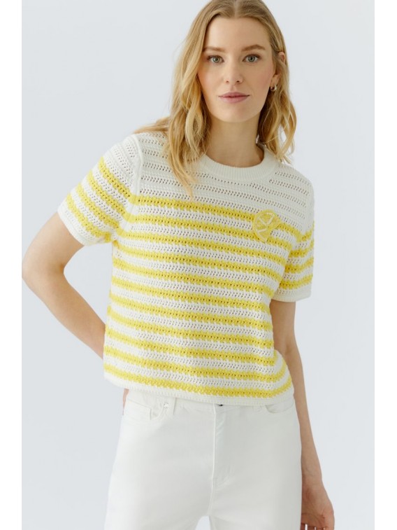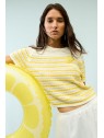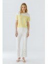 -Pur coton, tricoté à rayures avec un aspect crochet.