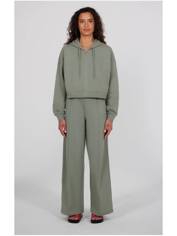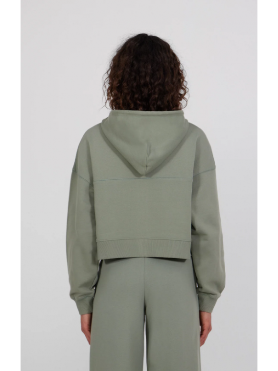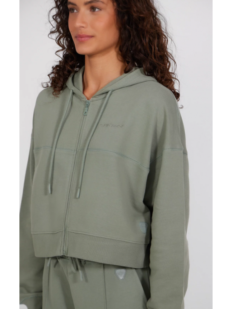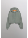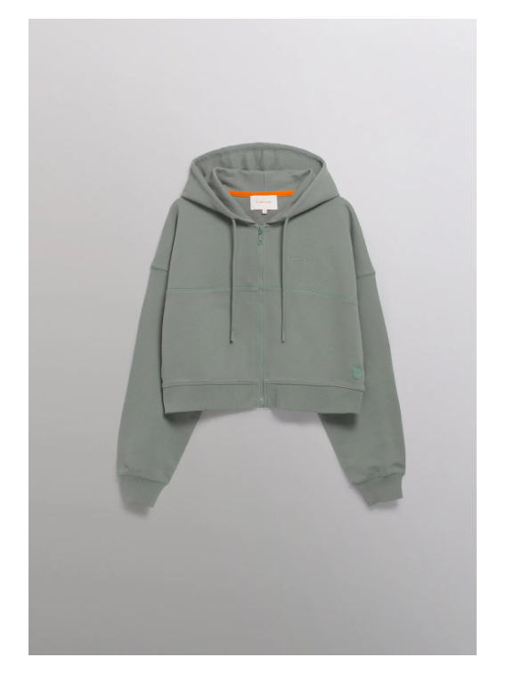 AMINA est un sweat à capuche à coupe cropped et épaules sont tombantes. Les manches bouffantes et le bas de vêtement sont resserrés par un rib élastiqué. La capuche est ajustable grâce à un cordon ton sur ton. L’ouverture milieu devant est zippée. La marque est imprimée et brodée en coloris contrasté au niveau de la poitrine. Un patch silicone ton sur ton est positionné en bas de vêtement.