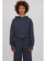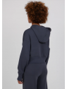ARLETTE est un sweat cropped à capuche. Sa coupe ample est renforcée par des manches tombantes. La capuche dispose de liens de serrage ton sur ton. Les poignets équipés de passe-pouce et le bas de vêtement sont en rib extensible. Des zips sont incrustés dans les coutures côté. Le logo de la marque est imprimé et brodé en léger contraste sur la poitrine. Le logo en silicone iconique est apposé en bas de vêtement.