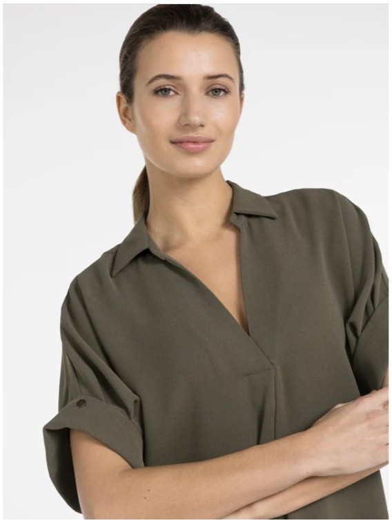 Cette élégante robe col V a des manches courtes légèrement plissées et une coupe ample. La robe est plutôt longue pour vous offrir une silhouette flatteuse tout en conservant le confort. Optez pour un look raffiné grâce à son fini épuré et son doux drapé. Une pièce polyvalente qui peut se porter au quotidien comme pour les grandes occasions.