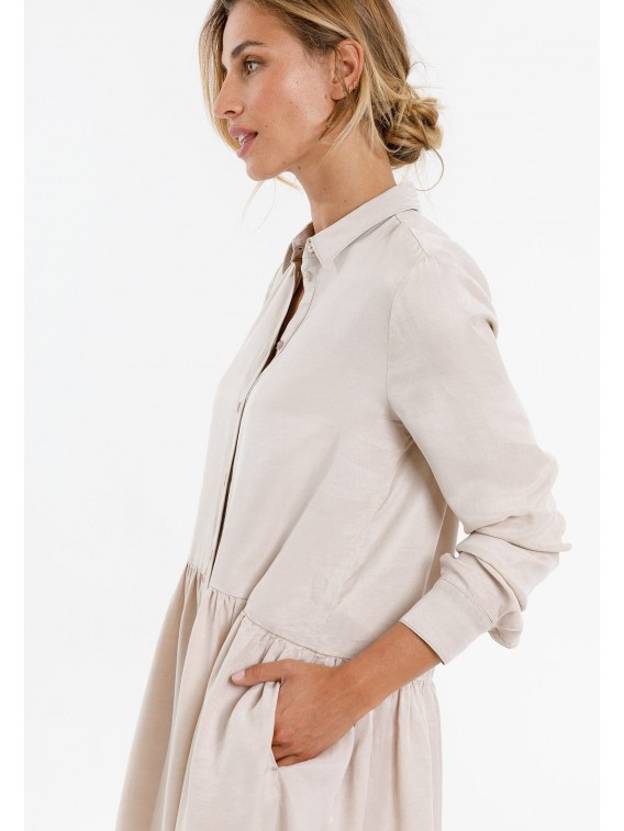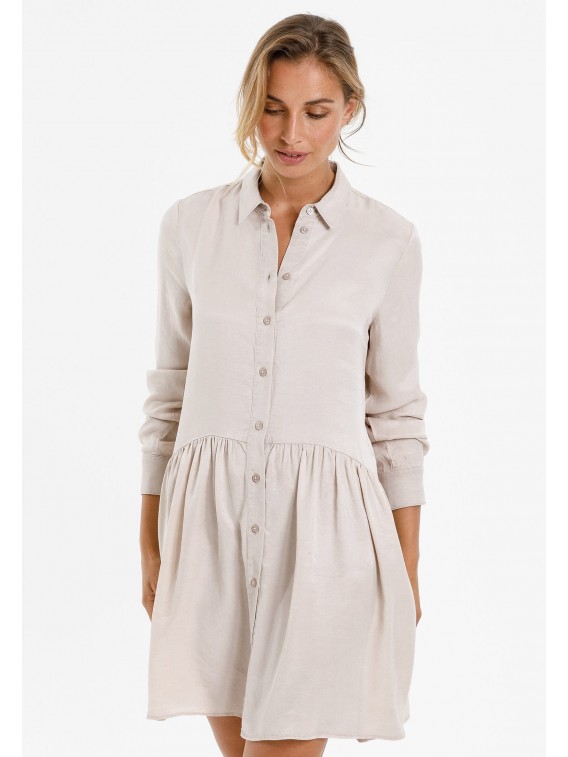 Non seulement durable, mais aussi durablement chic. La robe doit son aspect de soie authentique au lyocell en fibre de bois respectueux du climat. Après tout, cette jolie pièce provient de la ligne Eco Friendly. Il combine des éléments terre-à-terre tels que le col rabattu avec patte de boutonnage, une jupe ample et des poches pratiques dans les coutures.