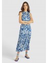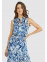 Le haut chemisier à imprimé tropical est joliment décoré de volants au niveau de la couture avant de l'épaule. L'empiècement dos est également travaillé avec des volants. Il est fait de viscose de haute qualité.