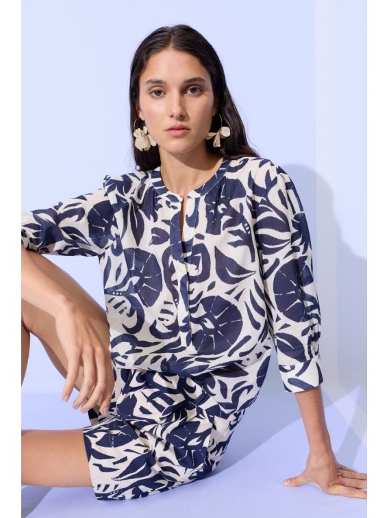 -Encolure de tunique avec parementure et courte patte de boutonnage dissimulée