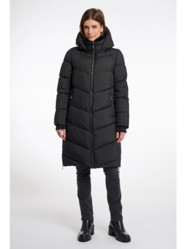 Le manteau idéal pour les journées fraîches. Ce manteau matelassé pour femme est doté d'une capuche à cordon élastique, d'une fermeture éclair à double sens, de deux poches latérales fendues zippées et d'une doublure polaire à l'intérieur des poches. Le manteau est doublé.