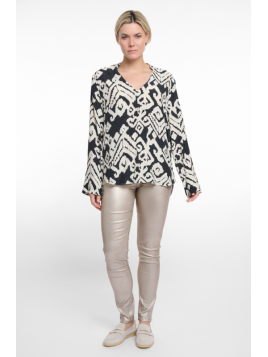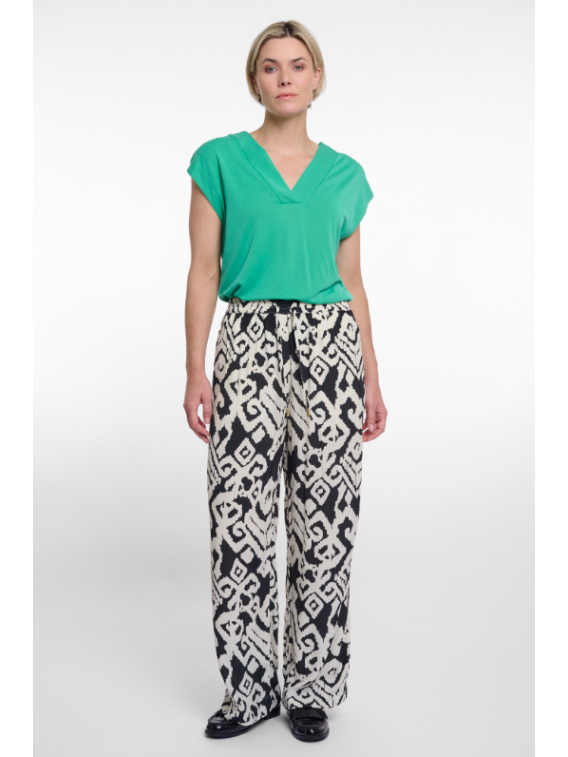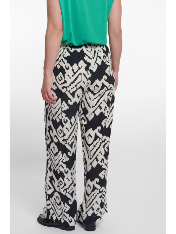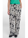 Voici notre élégant pantalon fluide avec imprimé ikat, taille élastique avec cordons de serrage et poches latérales fendues.