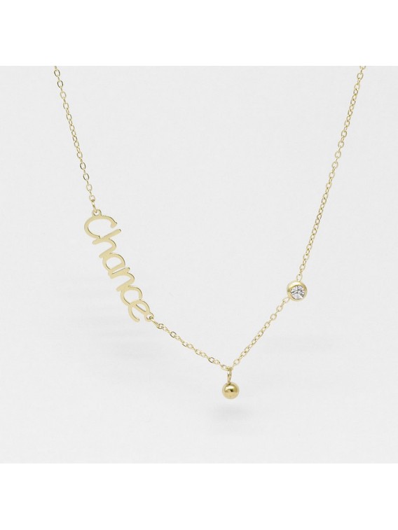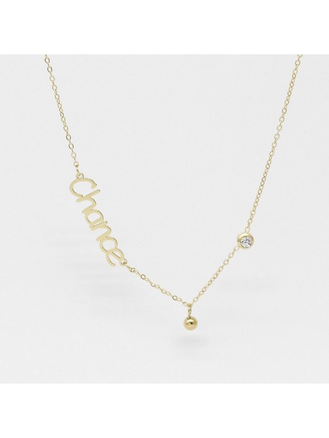 COLLIER–Suerte–ACIER DORE–zirconium–38+5cm Zag Bijoux